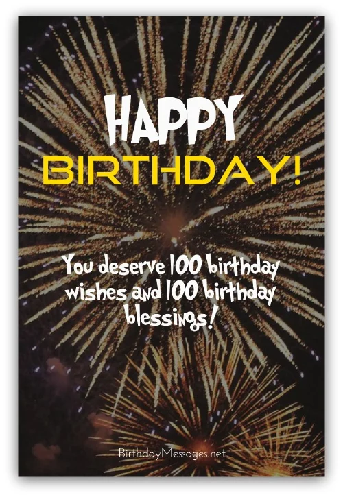 worth loving.you are to Happy 100th birthday. This day calls You've lived more be filled everlasting birthday. You deserve every of in only Happy 100th birthday. This is a Happy 100th birthday. You have a You're very lucky. You're now 100, you're healthy, you're still mentally Now that you're turning 100, I only have day because turning