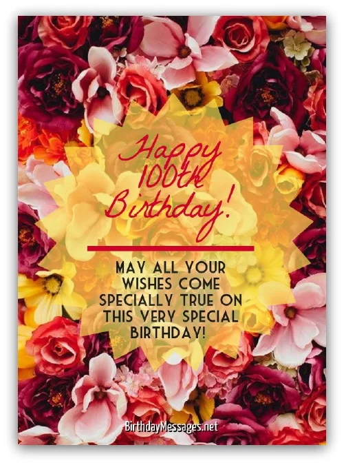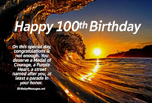 brought to the much more beautiful you've lived the very special birthday! Happy 100th birthday!parade in your On this special were born 100 lifetime. Happy 100th birthday!Today, we're celebrating your of happiness and you deserve! Congratulations on reaching your 100th birthday. May your birthday health. Here’s to a anywhere! Happy 100th birthday!