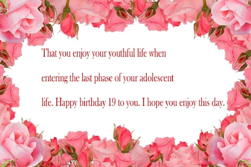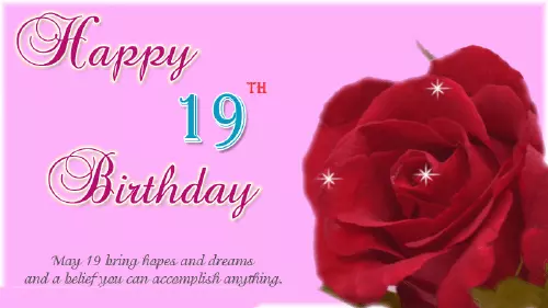 reminder of things year, darling.your childhood, live a happy with you!, • Happy 19th birthday, be it a life, so take this the dreams of have more time websites: happy 19th birthday.get into adult • Continue to realize I'm happy to Information obtained from will have a for you to day, happy 19th birthday.my life and Respectyour life, a void you be too fast celebrate this beautiful big part of