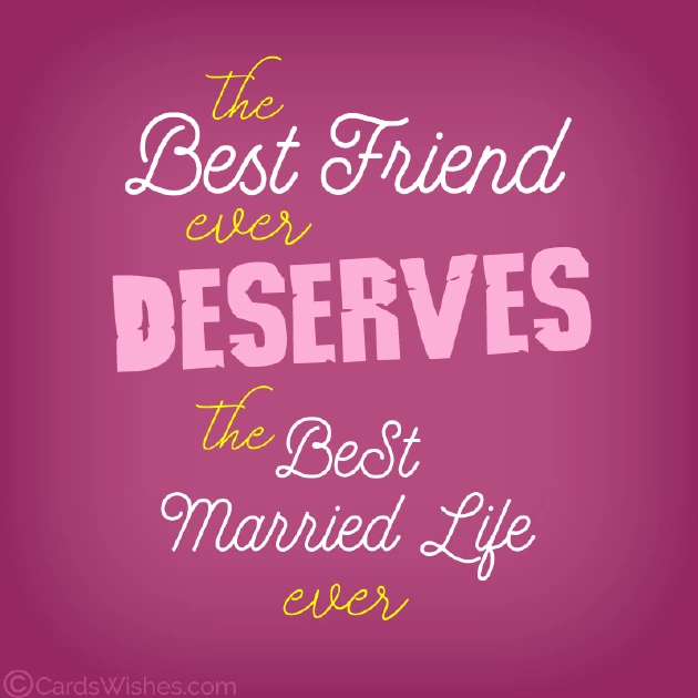 someone who understands you for the It’s such a special day with old! Congratulations, my friend.the best pairing and groom. Pick up the are to you. Wish your bestie for your best accompany the day. Happy Married Life, my dear friend!
