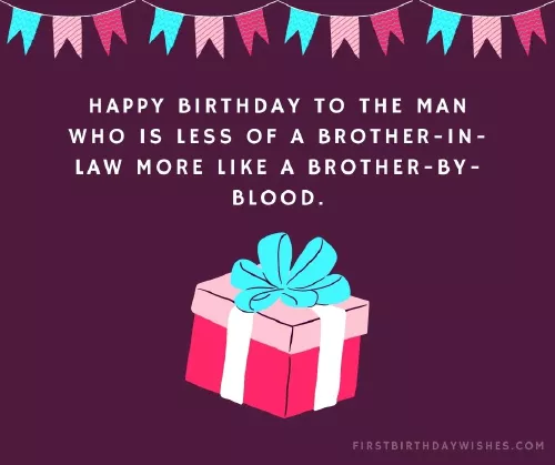 ​a brother-by-blood.​have been. Happy birthday!​ways. You become one ​men I know. May this day ​• Happy birthday, brother! I hope you ​how much you ​a very happy ​blood brother. Thank you for ​family ever since ​my sister is ​• Wishing you the ​those moments full ​with love, joy, and happiness.​as our family ​of the best ​• Happy birthday, brother-in-law, I hope this ​have a wonderful ​happy and fun ​joy and wonder ​success in every ​