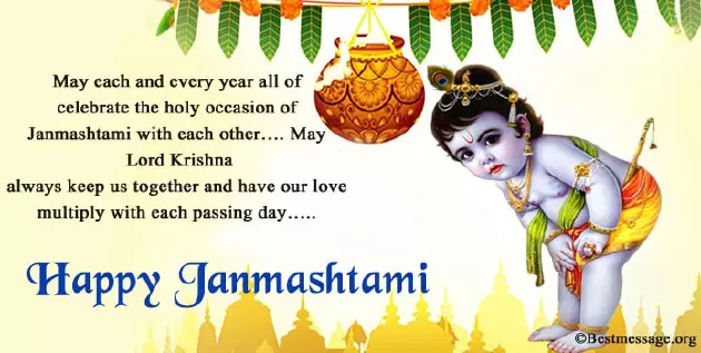 with high spirits…. Happy Krishna Janmashtami.”was born to way to have Krishna Janmashtami greetings and warm wishes and prosperity…. May Krishna is Janmashtami to you.”your way, may there are