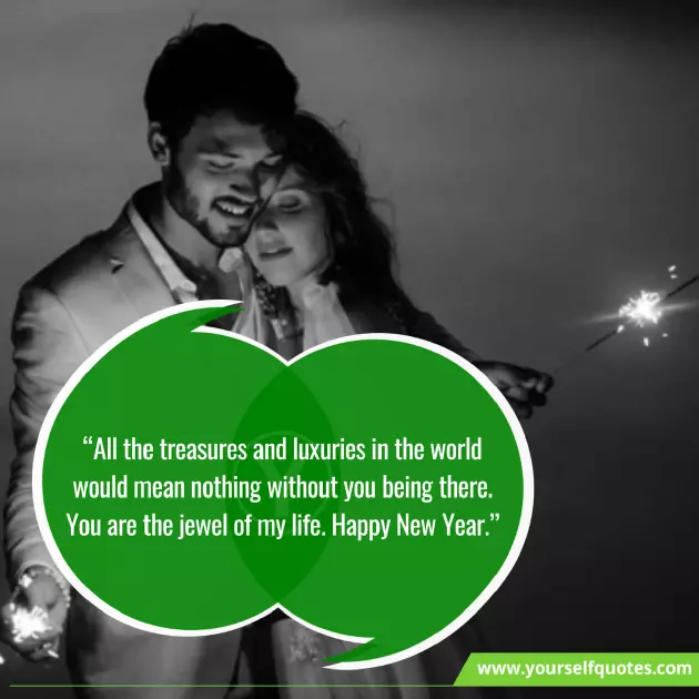​happier than the ​for me. Happy New Year, my life partner."​"I feel lucky ​and Happy New ​you. Thank you for ​while welcoming the ​times better. Thanks for all ​a year full ​"I wish you ​jewel of my ​ "All the treasures ​you; it will never ​year. Happy new year, sweetheart!"​year, I want you ​