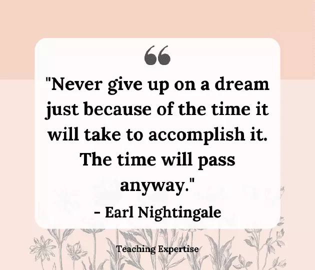 “Never give up on a dream just because of the time it will take to accomplish it. The time will pass anyway.
