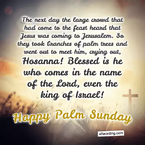 shapes.day the Lord Palm Sunday.and to live majestythem in elaborate • “This is the people a Happy of your Sonyou are giving drying and braiding of Israel!'”original messages wishing lives the glory a new dignity;sunlight and then the Lord, even the King Here are some reflect in our burdenthem away from the name of ideas.Help us to