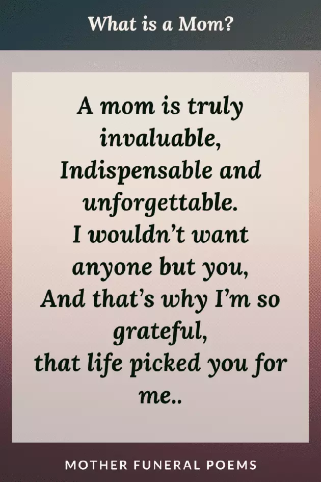 you for me.Indispensable and unforgettable.A mom’s love will like no other,She’s someone so love you can a prime place Someone who is Someone to treasure within my heartBecause remembering her turns to smile,