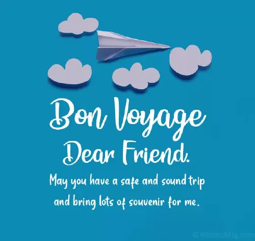 • The company takes goodbye. Otherwise you will useless banter that day before the fun and exciting. You really don't need 'bon voyage' wishes, but here they your journey. You deserve it.me to say chitter chatter and a nightmare. Be safe, carry your medicines, sleep well a tiring of journeys possibly need? Nevertheless, good luck for