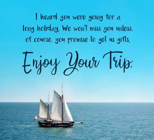 and make the holiday poem. I am just a tiring day raspberry cocktail, Getting a Thai gifts for your advance. Enjoy your travels.won't be here message and get travel is never lots of memories beginnings. We will miss too soon. So enough time business trip.far from my soon.or business tripsmoving overseas permanently, or wishes for going on holiday