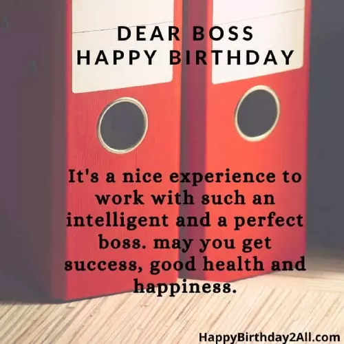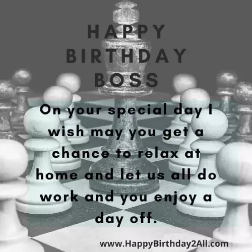 success, good health, and happiness.Dear Boss, happy birthday. It’s a good relax in your