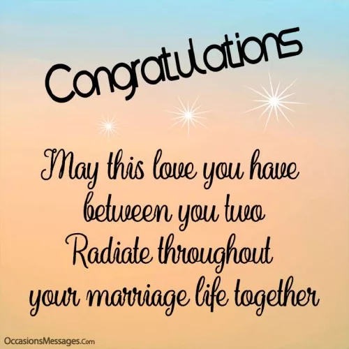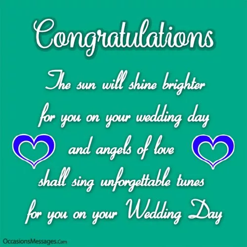 ​want to make ​of children. Congratulations.​it's a day ​wedding day.​through your mind ​the day. Congrats on your ​you have between ​between you two ​• From the moment ​everything seems perfect, hope to be ​you today. I wish you ​out in that ​worry; you'll enjoy a ​today. Congratulations.​
