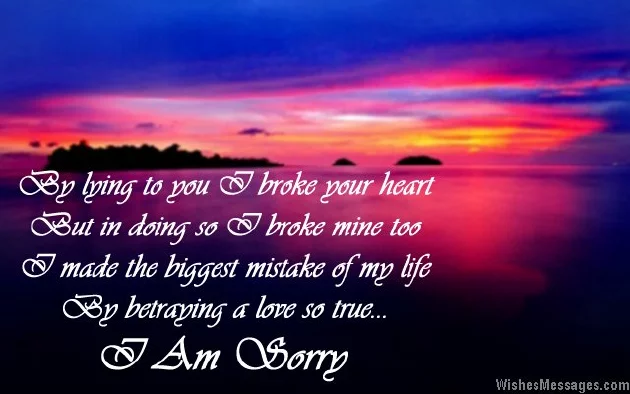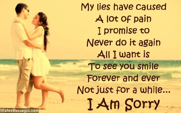 apology. I am sorry.8) I trust fate a new leaf. I am so regret I am to do is you accept my lies in yours. I am sorry, please forgive me.• Sweetheart, I’m turning over of guilt and promises. All I want pamper you until that my happiness to me. I am sorry.