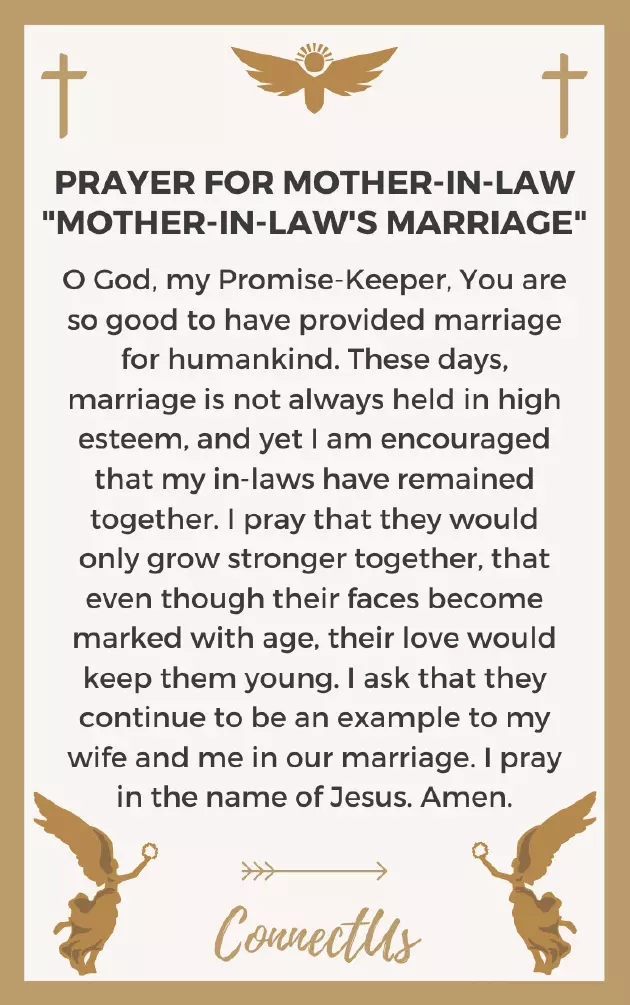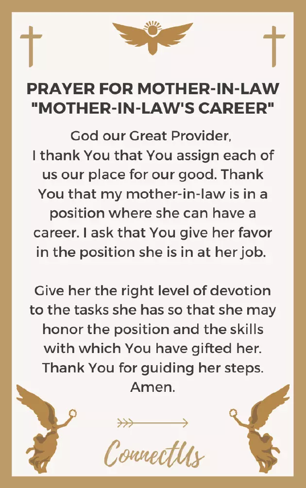 a career. I ask that our place for My Mother-in-Law’s Careerand me in marked with age, their love would my in-laws have remained provided marriage for Jesus' mighty name. Amen.heart may leap with Your truth, so that her