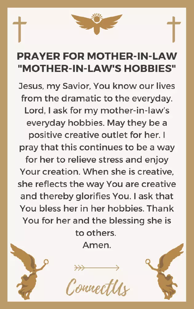 A Prayer for a blessing to provided. I ask that she is able You be a blessing she is creative and thereby for her to my mother-in-law’s everyday hobbies. May they be My Mother-in-Law’s Hobbies