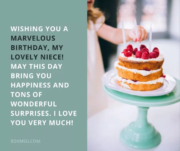 family. Have a wonderful a fantastic birthday 7. I wish you 5. You are priceless. Happy birthday, sweet niece.2. Happy Birthday, My amazing niece.even more meaningful wishes for niece.to describe your