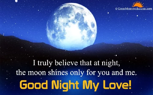 that at night, the moon shines Good Night My Love Quote With you until the Full HD Picturenot forever, but our love