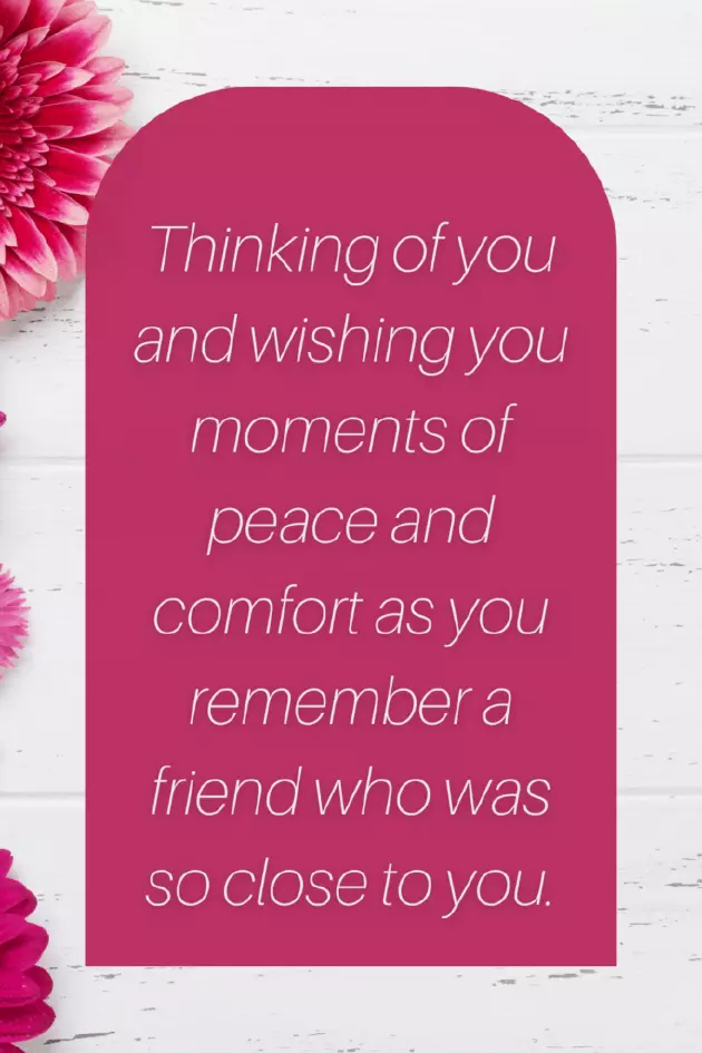 Thinking of you and wishing you moments of peace and comfort as you remember a friend who was so close to you.