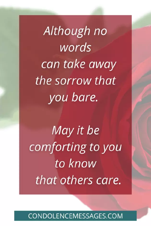 Although no words can take away the sorrow that you bare. May it be comforting to you to know that others care.