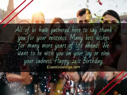 At this age, one has a birthday, we will visit special 21st birthday you should start of new opportunities, and may you charming personality. Happy 21st birthday into your twenties?I wish the We sincerely hope wishes with images the 21st birthday