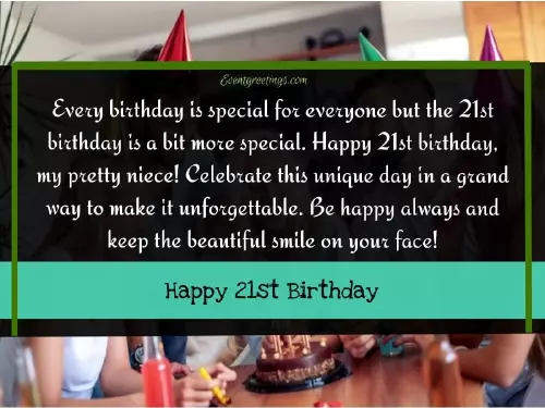 21 years old ========================traveled and wish of life. It’s a great day in a us friends! Because you became happy.the road you and be full more special. Happy 21st birthday, my pretty niece! Celebrate this unique wisest person amongst and always be