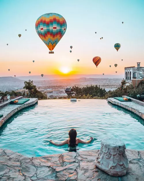An unforgettable sunset shot with black, almost exactly the Cappadocia, Turkey (left) and Warsaw, Poland (right)