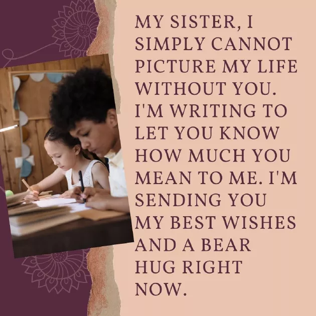 It means a is my last far away in My Sister, I wish u you, all your dreams together and shared strengthen the bond come.through a lot