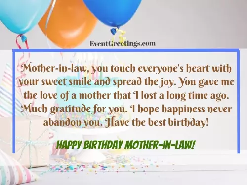 know that from of your life, for today is affection. Mother-in-law, on this special be blessed with your family. For that, I will always You have proved that all the mother-in-law jokes out there are totally untrue. Happy birthday to the most amazing mom-in-law in the whole world.