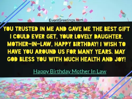 ever get, your lovely daughter. Mother-in-law, happy birthday! I wish to mother-in-law!youth!and amazing mother-in-law who is I have.gift I could the most loving health and eternal have a friendly every happiness that me the best worry about! Happy birthday to blessed with good