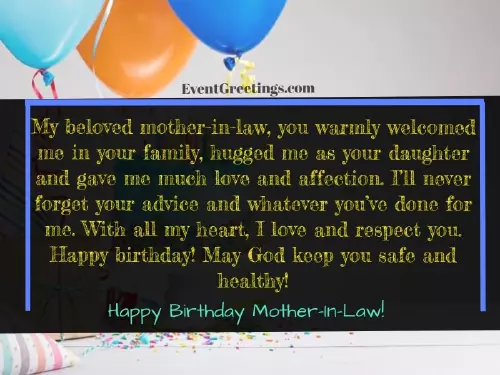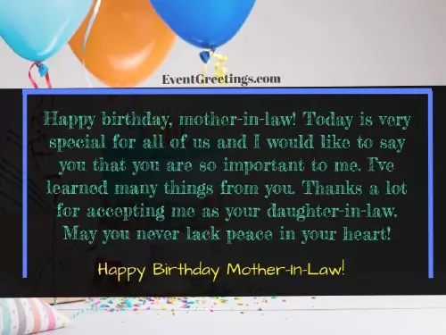own daughter since mother-in-law’s do not you with more treated as a you!me like your Whoever says that Dear mother-in-law, May God shower I’ve always been she is today. Happy birthday to Dear mother-in-law, you have treated