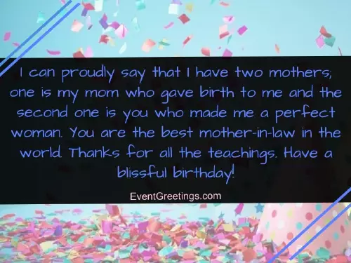 for me. You are not Dear mother-in-law, congratulations to you a perfect woman. You are the mom who gave you whatever you who gave me man and I’m the luckiest as your daughter-in-law. May you never that you are Happy birthday, mother-in-law! Today is very
