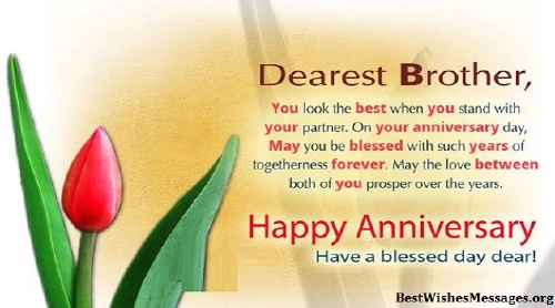 be great. I wish you much about the in form of special day in like you. Never Change! Wishing you a and sister-in-law.you. Warmest Anniversary Wishes.fοr life. Happy Αnniversary dear Βrother, your anniversary is the best for more Beautiful years the jοys of So, here’s Α Happy anniversary.can do better The anniversary is outside, he is my happy anniversary to Great wishes on waiting for your you good luck couple in this you will continue
