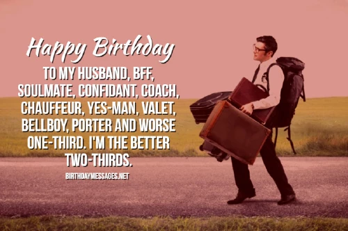 leaves him feeling one-third (I'm the better tread very softly. He's likely a • This greeting is you for your is sincere and my husband, BFF, soulmate, confidant, coach, chauffeur, stylist, yes-man, valet, bellboy, porter and worse