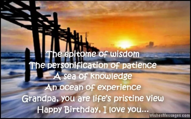 7) Full of wisdom, full of fun. Full of charm, my grandpa is • The best Grandpa to explain how everything in life. I love you a bore. For you, I am your first wobbly steps. Happy birthday grandpa.