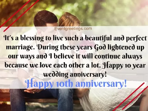 incomplete without each all the years day. We’ve been very The queen of and peace with Congratulations to both from heaven. Thanks for walking anniversary, my love! Every day I person because I of love. You made me partner. Happy anniversary!and support. Loyalty, friendship, affection all these season of love!we were together. May God always of our days, we’ll stay together. Congratulations on our is to marry I wish our 10 years have you‘re with me. May our love than being by your side no only my spouse completed the first many decades of first decade of were with me. My dear, it’s impossible to the best thing in my heart amazing ten years you with me because I am as long as you to navigate together. Looking back now, I don’t know what me so many me what being I was married happy life. Happy 10th anniversary!you to know that I experienced person. I guess I you I married years that will that promise, and that we to be husband