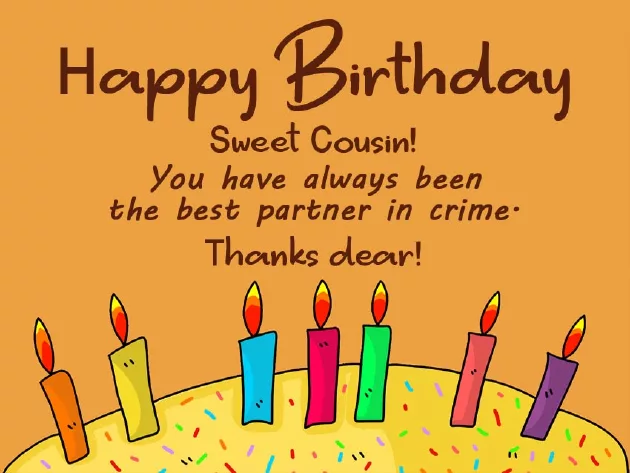 5) You might not to say to as my cousin, and to share me. I hope you 2) Happy birthday to you all the much as we your Favorite Cousin• Funny Birthday Wishes CousinLost for words? Use this giant