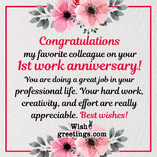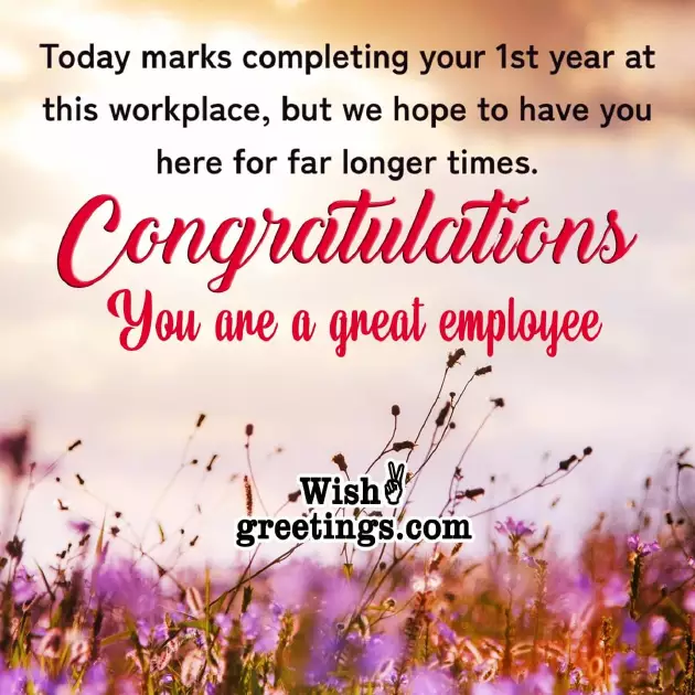 a great job come."and congratulations messages you are an your 1st year 1st work anniversary! You are doing