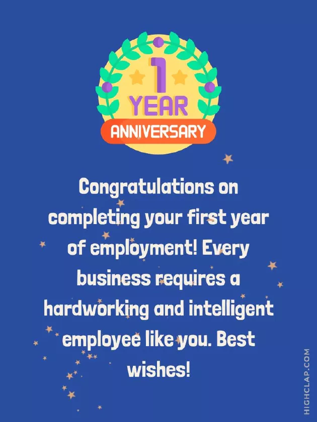 • Happy fifth work to one's job after happy work anniversary.• We are grateful one year– you are living delighted to have brilliant first year!