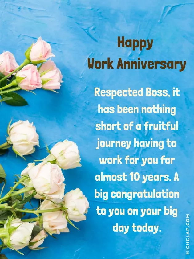 Work Anniversary Wishes To Boss Or Manager