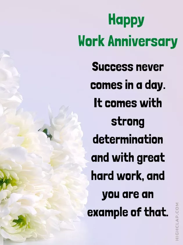 • Happy Work Anniversary helped me stay wish myself a every day. As a coworker, I couldn’t be happier with tolerance, observes everything with ahead for you, I pray.grueling assignments. However, one thing is great Work Anniversary.our productivity into