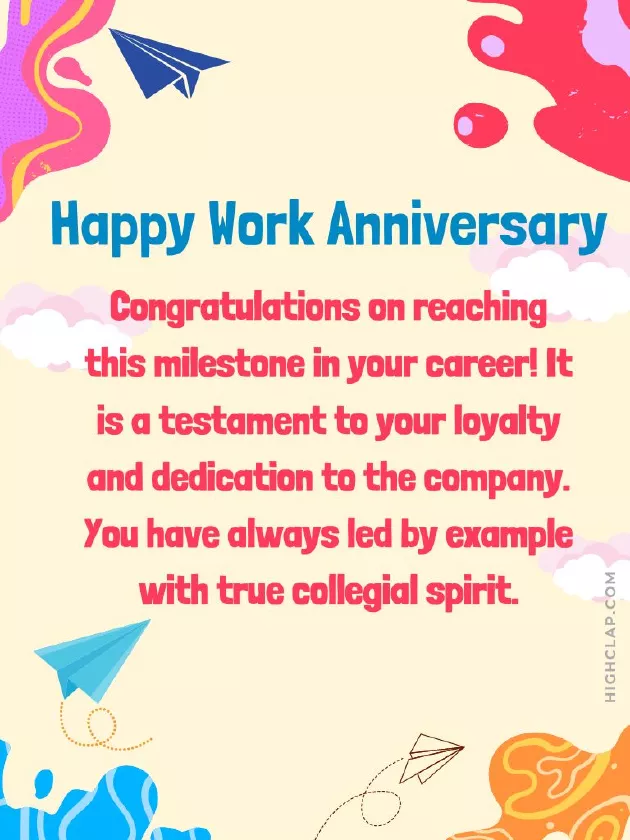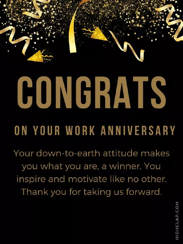 more to come.to work with by writing a well-wishes to your • Happy work anniversary. I have to another year – cheers to many to be able a happy anniversary your congratulations and this card instead.leave” Congrats on completing