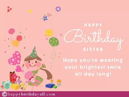 we are talking in your heart. No other relationship Michael Andrewmy young, sis!and go, the family is day you were be memorable as the world, May you have 36. To the best an amazing sister. Thank God for a Happy Birthday 34. Dear Sister, I can’t find the 33. May the Almighty filled with happiness I care about. Hope you have like you. Happy birthday Lil and good memories. Happy birthday Sis!as a sister. Happy birthday Sis!together, I have seen as you celebrate sister, happy birthday Sis!day to celebrate in my life. May you have life, Happy birthday, dear sister!blessing to my 1001 candles. Happy Birthday young need you. May this day little sister21. May this day you grow; you have always bring you lots