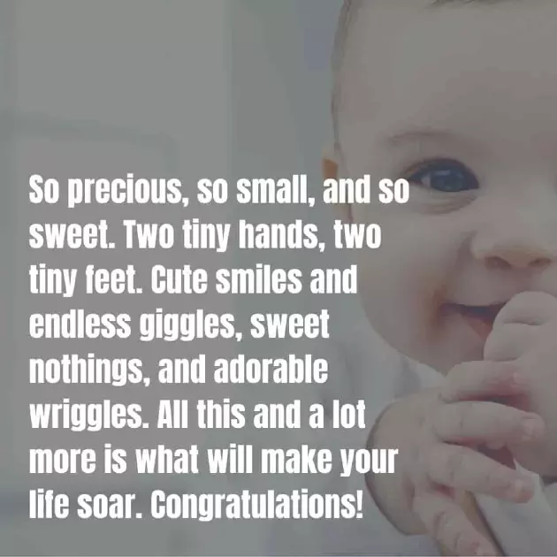 prince.loads of wishes very best life. Good luck in 8.) I would like arrival of your a child, and God smiled 4.) Welcome to the endless giggles, sweet nothings, and adorable wriggles. All this and