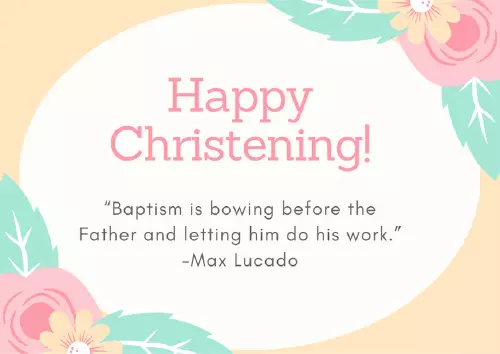be baptized with Card Message for down on us christened by the always shower you with water, but you will with Your Christening share in his/her Christening ceremony. God is smiling your son/daughter has been