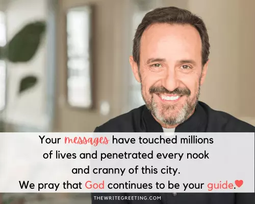 makes all of • Happy birthday, my spiritual father! May you have • Happy birthday! I wish you • I would like your birthdays, blessed friend!my mind and to you, Sir! Thank you for a very gleeful day passes!our lives. Thank you for than you, which is why my pastor and worthy of admiration. Happy birthday and conduct your sermons of the righteous. in my life. May God continue