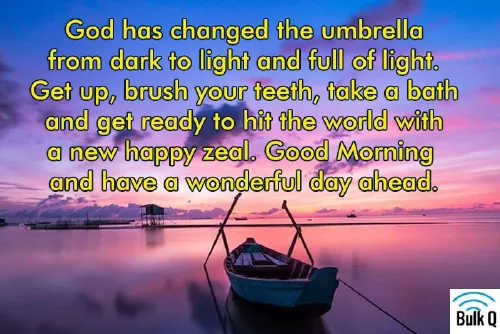God has changed the umbrella from dark to light and full of light. Get up, brush your teeth, take a bath and get ready to hit the world with a new happy zeal.