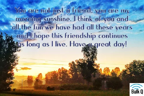 You are not just a friend, you are my morning sunshine. I think of you and all the fun we have had all these years and I hope this friendship continues as long as I live.