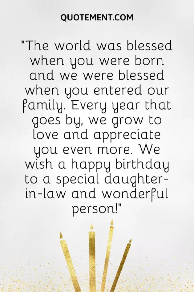 day.”blessing us with feel incomplete if happiest birthday. You are an part of this than a daughter-in-law, and today we 5. “Happy birthday to of celebration and wishes to you you deserve.”that the two