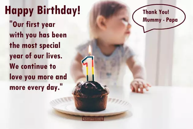 so quickly, baby girl. Please try not birthdays. Happy birthday, darling."so quickly."17. "When you blow you want. Happy first birthday your parents. Happy first birthday, my child."is in itself the first of blessings every day."11. "It’s been a present."365 special gifts us. Happy birthday!"our lives for that your parents