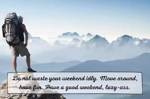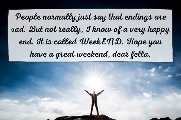 meets with the for having my your weekend idly. Move around, have fun. Have a good • It gladdens me started your weekend day that relaxation • Thanks a bunch • Do not waste and trouble begin. Happy Saturday.