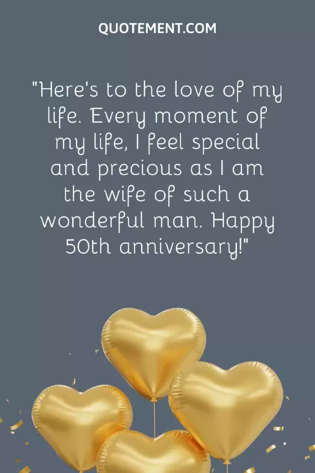 5. “It takes 50 wife. I’m incredibly blessed touches the century. Love you, my lovely husband.”wonderful day together!”gift.”you!”the most beautiful 50 years. I hope it your 50th anniversary, and have a