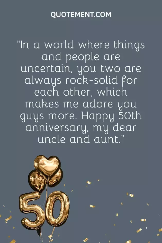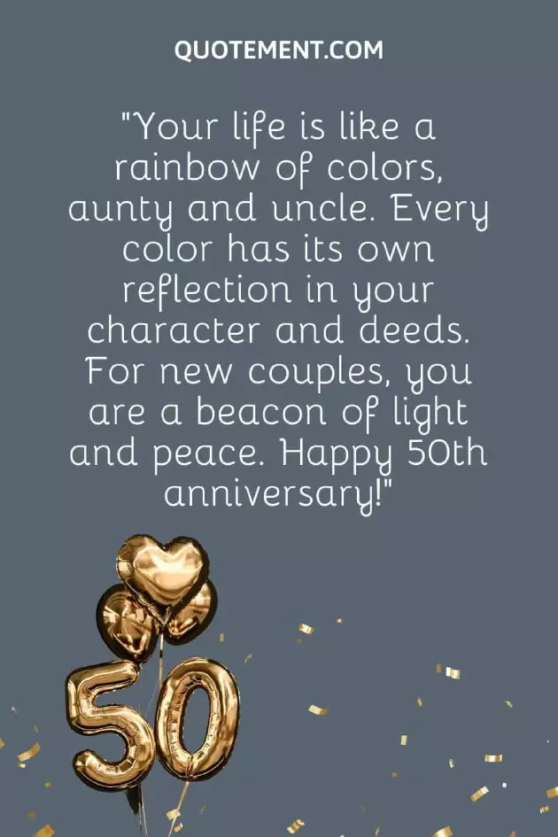 to my wonderful bring a smile for 50 years!”you follow. Sometimes you dip a celebration of 7. “Uncle and aunt, happy 50th wedding been breathtaking. This anniversary, however, will be special bless your bond.”anniversary!”is present in